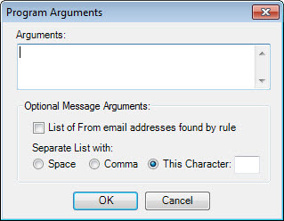 You can pass optional arguments to the program as well as a list of From addresses that are matched by the rule.